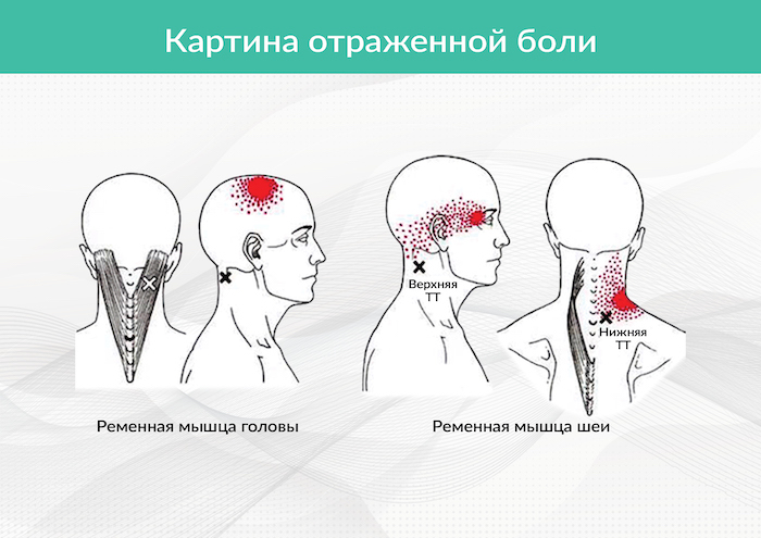Рис. 3. Локализация триггерных точек ременных мышц головы и шеи