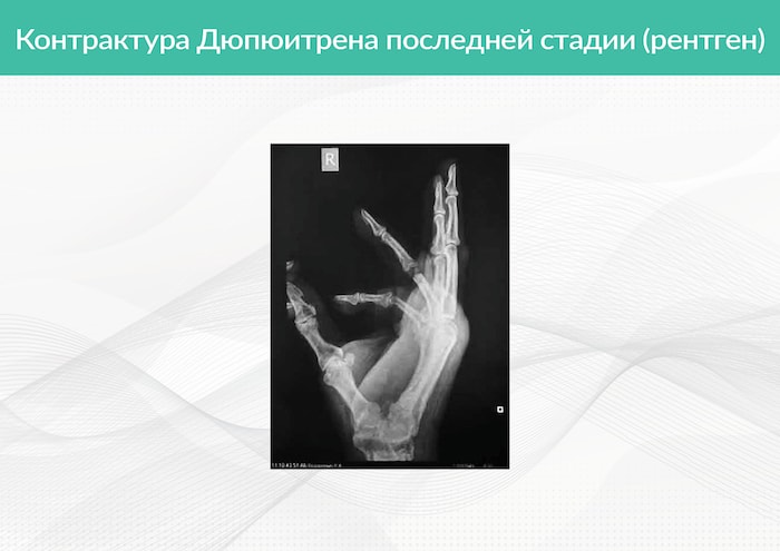 Рис. 4. На рентгенограмме кисти - контрактура Дюпюитрена