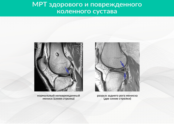Рисунок 2. МРТ коленного сустава: повреждение мениска