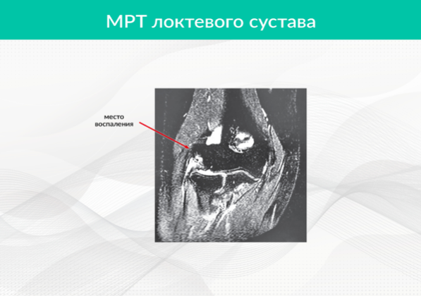 Рис. 2. МРТ локтевого сустава: травма и очаг воспаления в области латерального надмыщелка