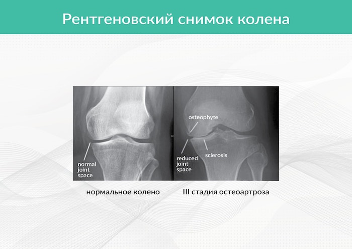 Рис. 3. На рентгенограмме: изменения в коленном суставе при остеоартрозе