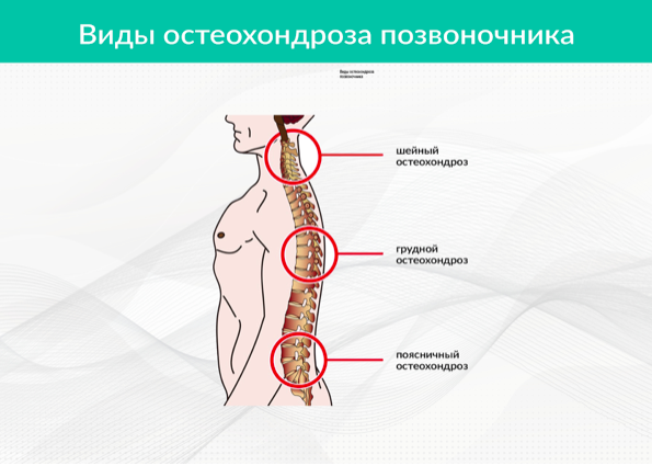 В зависимости от локализации процесса остеохондроз позвоночника классифицируют на: