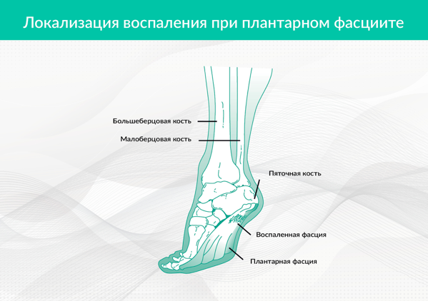 Плантарный фасциит характеризуется дегенеративно-дистрофическими процессами в мягких тканях в месте, где подошвенная фасция (эластичная прочная связка, соединяющая пятку и пальцы, поддерживающая свод стопы и выполняющая амортизационную функцию) крепится к пяточной кости. Ежедневные растяжения могут приводить к микроразрывам этой связки, которые в норме заживают и проходят бесследно. Иногда такие микротравмы не успевают зажить, развивается отек, воспаление и боль. Патология занимает одно из первых мест в ортопедии.