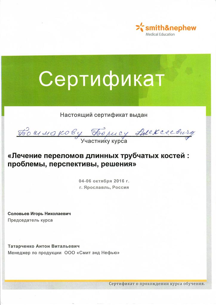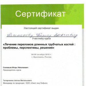 - 2016 – Курсы по рациональному использованию БИОС трубчатых костей