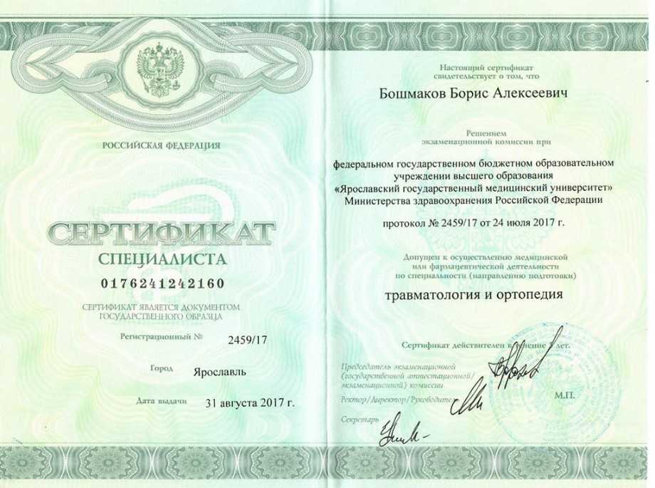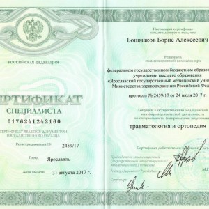 - 2017 – клиническая ординатура на кафедре травматологии, ортопедии и военно-полевой хирургии последипломного образования в Ярославском государственном медицинском университете
